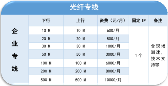企业专线网络拥有自己的固定IP,而普通宽带却没有。当外界访问服务器的时候,固定IP就是识别我们的唯一标识,甚至说有了固定IP以后网络会更加稳定,普通宽带可能三天两头就掉线了,但是这种情况几乎不会发生在企业宽带的身上。